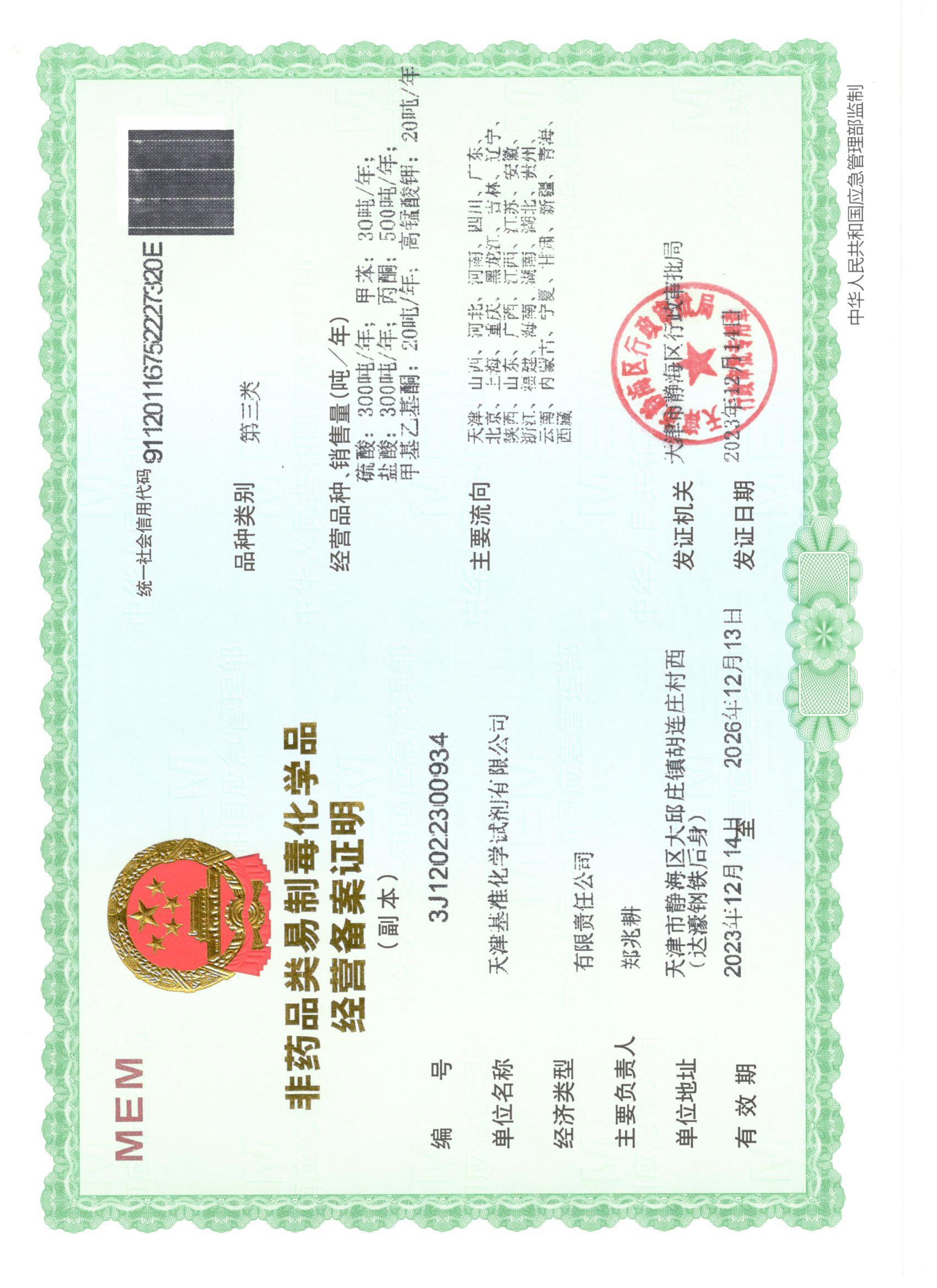 天津基準化學試劑有限公司成立于2003年,是一家集研發(fā)、生產(chǎn)、銷售于一體的化工企業(yè),我們致力于為生物醫(yī)藥、精細化工、食品工業(yè)、